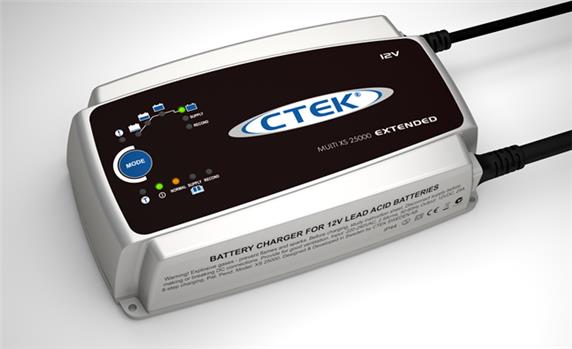 The MULTI XS 25000 EXTENDED is a fully automatic 8-step charger that delivers 25 A to 12 V batteries from 40–500 Ah.