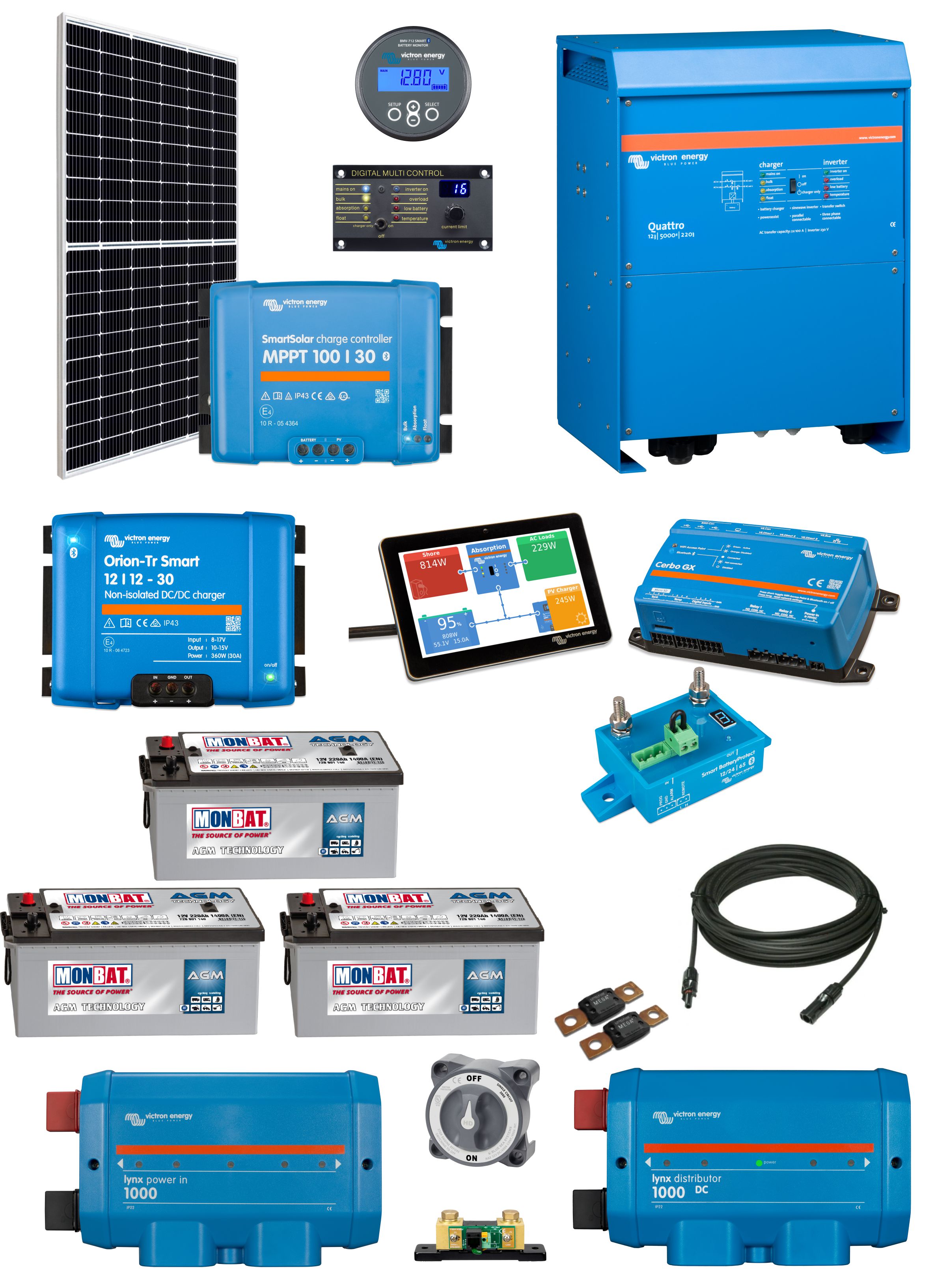 12V Camper Conversion 375W Solar, 5000W Quattro & 660A AGM Batteries