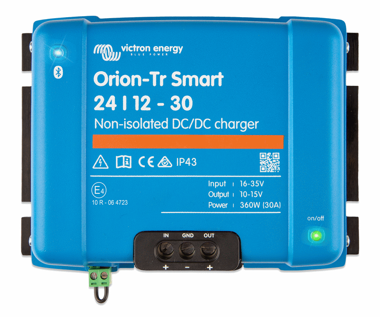 The Orion-Tr Smart DC-DC charger is a professional DC to DC adaptive 3-stage charger with built-in Bluetooth.